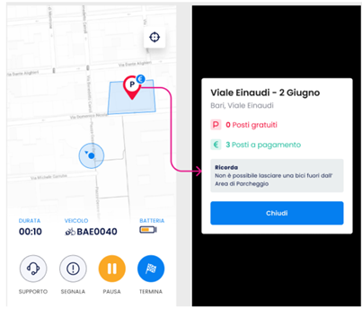 To support citizens and speed up the parking process, VAIMOO has enabled the option to park at a station even when it is already full, by adding new virtual spots that can be used for an additional fee.